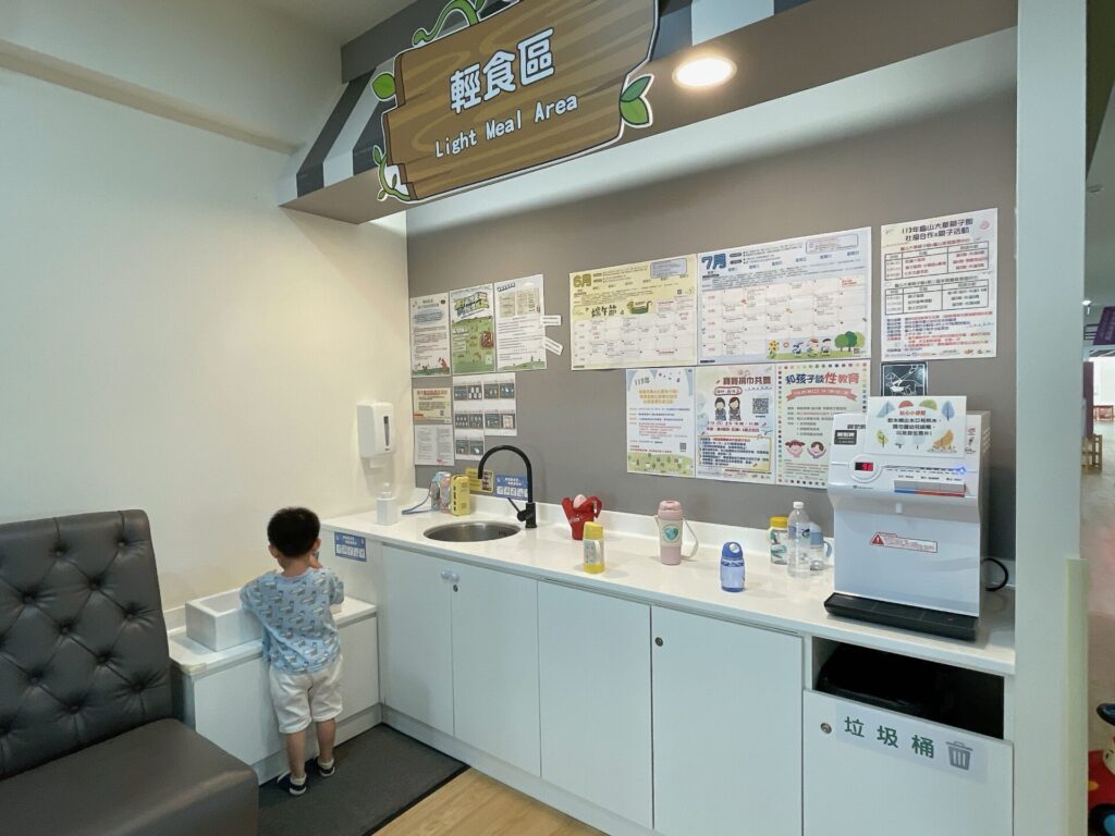 另外,進門的輕食區可以輕鬆洗手和裝水,不用抓著蠢蠢欲動小孩去廁所,嫩嬰也有地方喝奶非常體貼;周遭停車環境也不錯,往內開有停車格,因周遭都是住宅區多半都是走來玩,所以每次去幾乎都有位置可以停,下雨也不怕,是我們家在梅雨季時常到訪的地方喔!