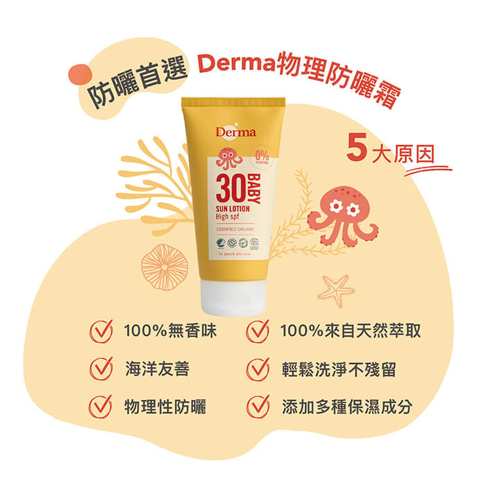 【物理性】Derma 丹麥德瑪 寶寶有機防水物理防曬霜