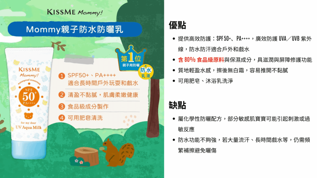 - 推薦購買連結:【KISSME奇士美 官方旗艦】Mommy 親子防水防曬乳50g