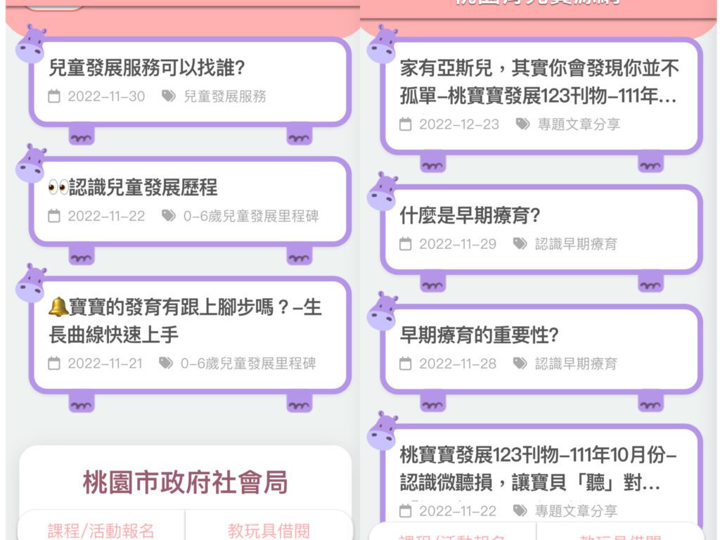 近年來,過去被視為耗時的政府機構也積極推動網路服務,從線上報稅到資訊公開,一切都變得更加透明、方便、快速。當然,最需要效率的家長們也沒有被忽略!桃園市於 2022 年推出「桃園育兒資源網」,將育兒資源進行全面整合,從親子館一鍵預約、線上報名免費親子課程,到預約借用教玩具把快樂帶回家,都可以在網站上完成。除了這些功能之外,還有什麼實用服務呢?讓我們繼續看下去!