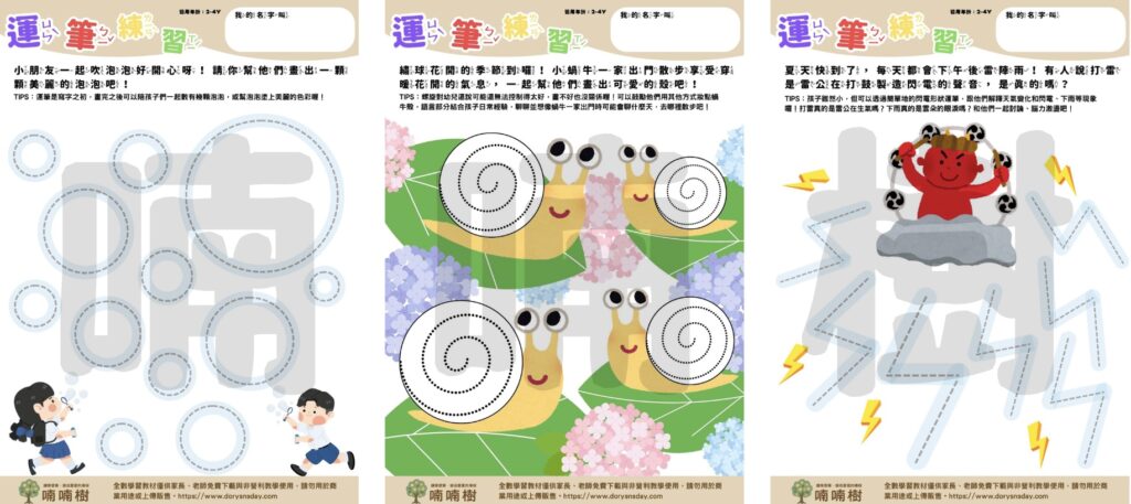 - 運筆為寫字之初,幫助孩子練習「畫線不超線」的控制力